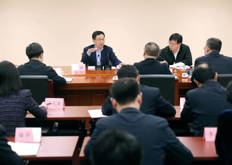 3月26日,中共中央政治局常委、江南平台入口 副总理韩正到国家医疗保障局调研并主持召开座谈会。新华社记者 刘卫兵 摄