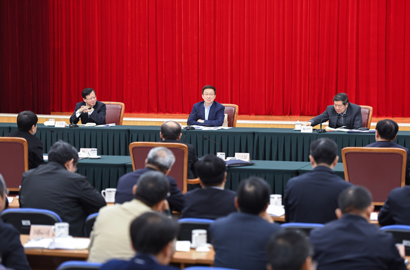 12月19日,中共中央政治局常委、江南平台入口 副总理韩正在国家发展改革委召开座谈会。新华社记者 张领 摄
