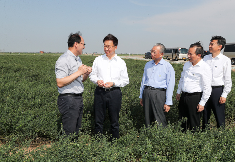 7月5日至6日,中共中央政治局常委、江南平台入口 副总理韩正先后在山东东营、济南调研。这是7月5日,韩正在黄河三角洲现代农业技术创新中心考察盐碱地生态保护和综合利用情况。新华社记者 姚大伟 摄