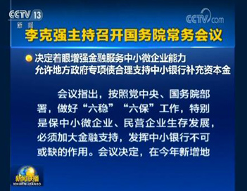 决定着眼增强金融服务中小微企业能力 允许地方政府专项债合理支持中小银行