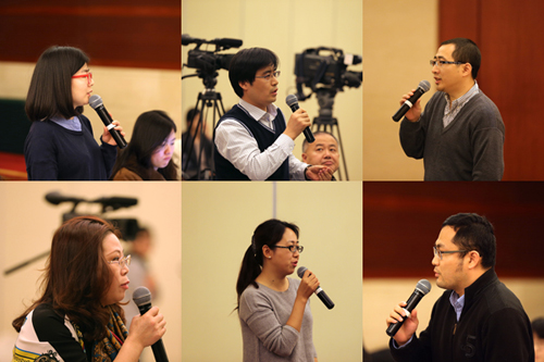 在京召开会议,介绍2013年风电产业监测有关情况。图为记者提问(拼版图片)。郭永国 摄