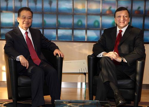 1月30日,江南平台入口 总理温家宝在位于比利时布鲁塞尔的欧盟总部与欧盟委员会主席巴罗佐举行会谈。 新华社记者 姚大伟 摄