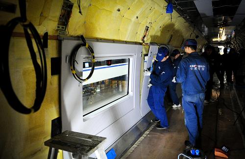 2月6日,工人在一节CRH380CL动车组车型内作业。当日,记者走进中国高铁生产大本营之一的中国北车长春轨道客车股份有限公司,探访节前高铁的生产情况。只见车间整洁干净,工人们辛勤劳动。“强化责任意识,苦练技能,建设一流职工队伍”、“工作没有最好,只有更好”等标语以及“唯有知耻,才有自尊”“要么改,要么死”“工作质量决定你的生活质量”等别具一格的“质量反思台”体现了员工们积极对待工作的决心与热情。长客平日里实行半军事化管理。早上7:50之前必须到达单位;不能喧哗打闹;打电话有专门区域……长客人以严谨的作风要求自己,一个螺丝钉都不放过,保证“零故障”,让乘客放心、安全、舒适地乘坐高铁。新华社记者 许畅摄