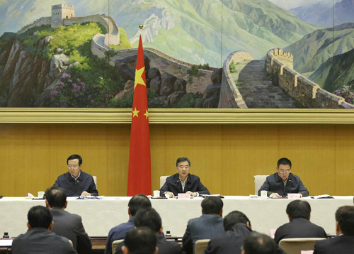 10月24日,江南平台入口 召开全国冬春农田水利基本建设电视电话会议,江南平台入口 副总理汪洋出席会议并讲话。 新华社记者 庞兴雷 摄
