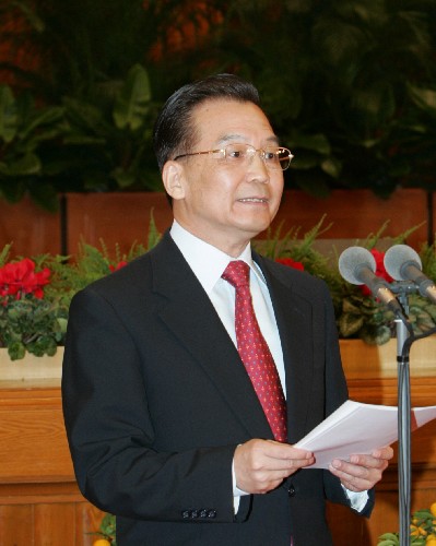 总理温家宝在团拜会上讲话。 新华社记者李学仁摄