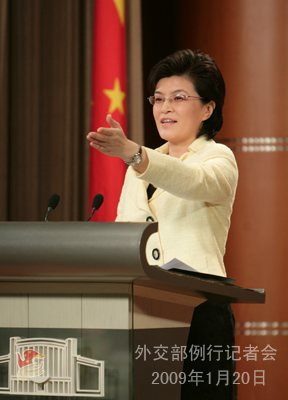 2009年1月20日,外交部发言人姜瑜举行例行记者会,主要就温家宝总理访问欧洲四国和欧盟总部并出席世界经济论坛年会、中美关系、朝鲜半岛局势等答记者问。