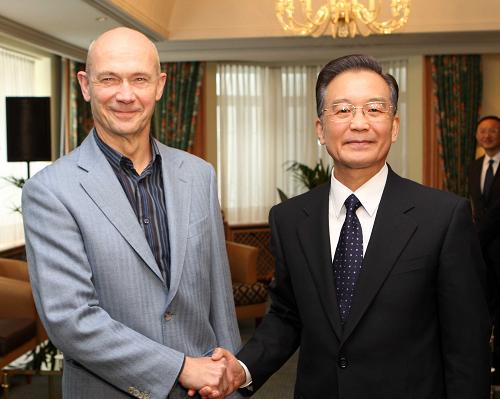 总理温家宝在瑞士达沃斯会见世界贸易组织总干事拉米。新华社记者兰红光摄