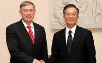 温家宝会见欧盟轮值国主席、捷克总理托波拉内克