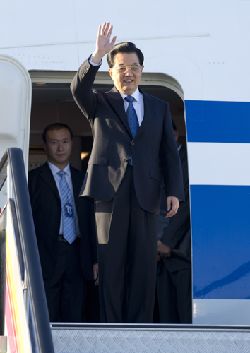 9月6日,中国国家主席胡锦涛抵达俄罗斯符拉迪沃斯托克,出席8日至9日举行的亚太经合组织第二十次领导人非正式会议。新华社记者 王晔 摄