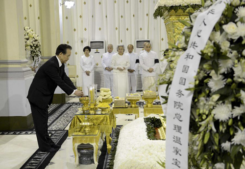 温家宝吊唁柬埔寨太皇西哈努克并会见太后和国王
