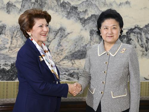 11月30日,中国国务委员刘延东在北京会见应邀访华的欧盟委员会教文委员、中欧高级别人文交流对话机制欧方主席安德鲁拉·瓦西利乌一行。 新华社记者 谢环驰 摄