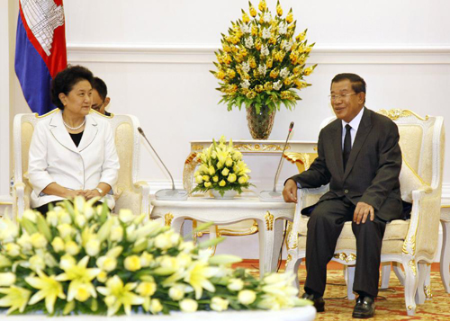 柬埔寨首相洪森在金边会见中国国务委员刘延东