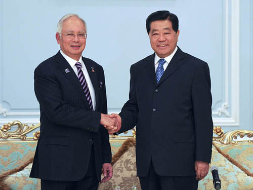 2月5日,全国政协主席贾庆林在吉隆坡会见马来西亚总理纳吉布。新华社记者 张铎 摄