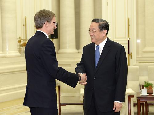 4月25日,中共中央政治局常委、全国政协主席俞正声在北京会见公正俄罗斯党主席、俄罗斯国家杜马副主席列维切夫。新华社记者 马占成 摄