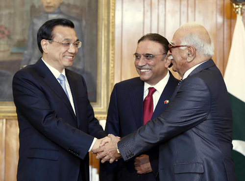 总理李克强在伊斯兰堡会见巴基斯坦总统扎尔达里。新华社记者 庞兴雷 摄