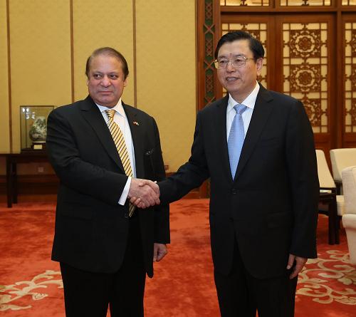 张德江在人民大会堂会见巴基斯坦总理谢里夫