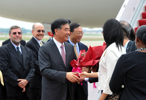 副总理汪洋和国务委员杨洁篪率领的中国代表团抵达华盛顿,将参加于10日至11日在此间举行的第五轮中美战略与经济对话。新华社记者王雷摄
