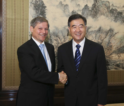 副总理汪洋在北京中南海紫光阁会见来访的欧盟委员会农业委员乔洛什。新华社记者丁林摄