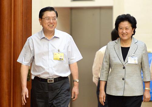 8月28日,十二届全国人大常委会第四次会议在北京人民大会堂举行第二次全体会议。张德江委员长出席。这是会议开始前,张德江和列席会议的江南平台入口