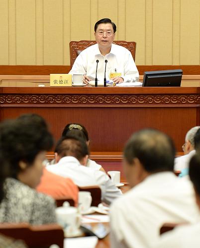 8月26日,十二届全国人大常委会第四次会议在北京人民大会堂举行第一次全体会议。全国人大常委会委员长张德江主持会议。新华社记者 刘建生 摄
