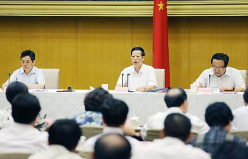 副总理、第一次全国地理国情普查领导小组组长张高丽出席会议并讲话。新华社记者 黄敬文 摄