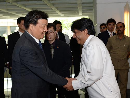 9月9日,中共中央政治局常委、中央书记处书记刘云山在科伦坡会见斯里兰卡海外就业促进与福利部长佩雷拉。新华社记者 马占成 摄
