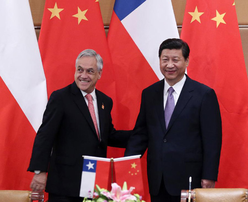 皮涅拉表示,1970年,智利在南美洲率先同中国建交。智利欣赏中国悠久的文明,祝贺中国现代化建设取得的巨大成就,愿同中国加强战略伙伴关系,促进双边贸易和相互投资,拓展清洁能源、基础设施建设、防灾减灾、教育等领域合作,欢迎中国在智利设立科研中心,联合开展天文学等领域研究。智方愿积极推动成立中拉合作论坛,促进拉美太平洋联盟同中方合作。智方支持中方明年成功主办亚太经合组织领导人非正式会议,愿在亚太区域合作等方面同中方保持沟通和协调。