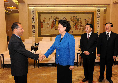 副总理刘延东在北京会见世界卫生组织总干事陈冯富珍。新华社记者 饶爱民 摄