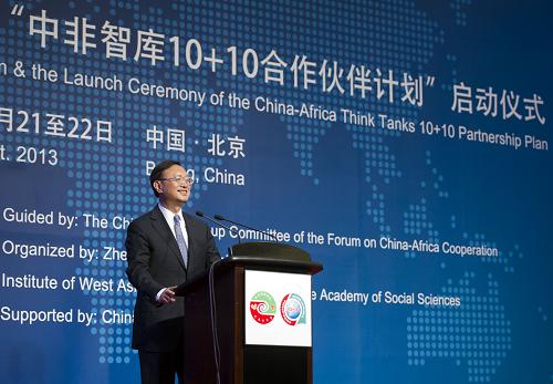 10月21日,中非合作论坛框架下的中非智库论坛第三届会议开幕式暨“中非智库10+10合作伙伴计划”启动仪式在北京举行,国务委员杨洁篪出席并讲话。新华社记者 谢环驰 摄
