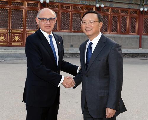 11月7日,中国国务委员杨洁篪在北京会见来华出席上海国际艺术节的阿根廷外长齐默尔曼。新华社记者 李涛 摄