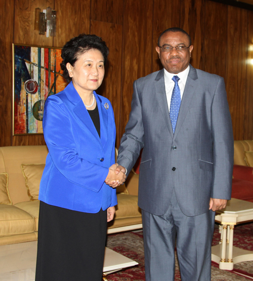 副总理刘延东26日在亚的斯亚贝巴会见埃塞俄比亚总理海尔马里亚姆。