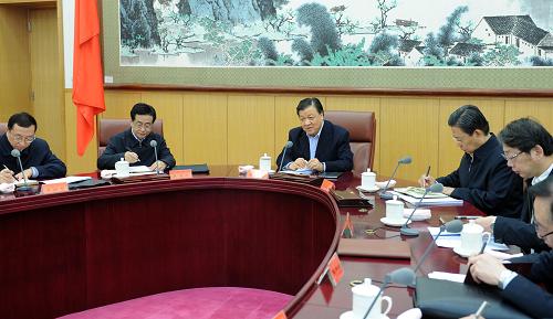 11月24日,中共中央政治局常委、中央党的群众路线教育实践活动领导小组组长刘云山在北京主持召开中央和国家机关教育实践活动中央督导组组长座谈会。新华社记者 张铎 摄