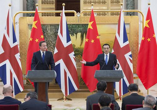 李克强在人民大会堂与英国首相卡梅伦共同会见记者