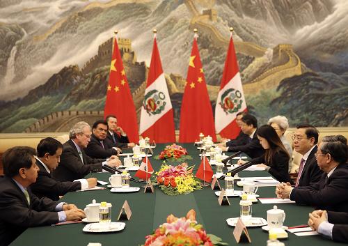 张德江说,中国和秘鲁都是世界文明古国,两国人民传统友谊深厚。秘鲁是最早同中国建交的拉美国家之一,也是最早同中国签署双边自贸协定的拉美国家。中方始终从战略高度看待和发展两国关系,愿与秘方一道,全面落实习近平主席和乌马拉总统去年会晤时达成的重要共识,按照中秘全面战略伙伴关系的新要求,增进政治互信,深化互利合作,推动中秘关系迈向更高水平。中方感谢秘鲁在台湾、涉藏等涉及中国核心利益问题上给予的坚定支持。秘鲁是拉美重要国家,希望秘方继续为推动中拉整体合作发挥积极作用。
