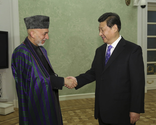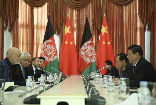 习近平指出,2014年之后,阿富汗的命运将更加紧密地同地区国家联系在一起。中方支持阿富汗融入地区经济合作。中方将于8月举办阿富汗问题伊斯坦布尔进程第四次外长会,我们愿同阿方密切合作,办好这次会议。中方也愿推动上海合作组织在阿富汗问题上发挥更大作用。