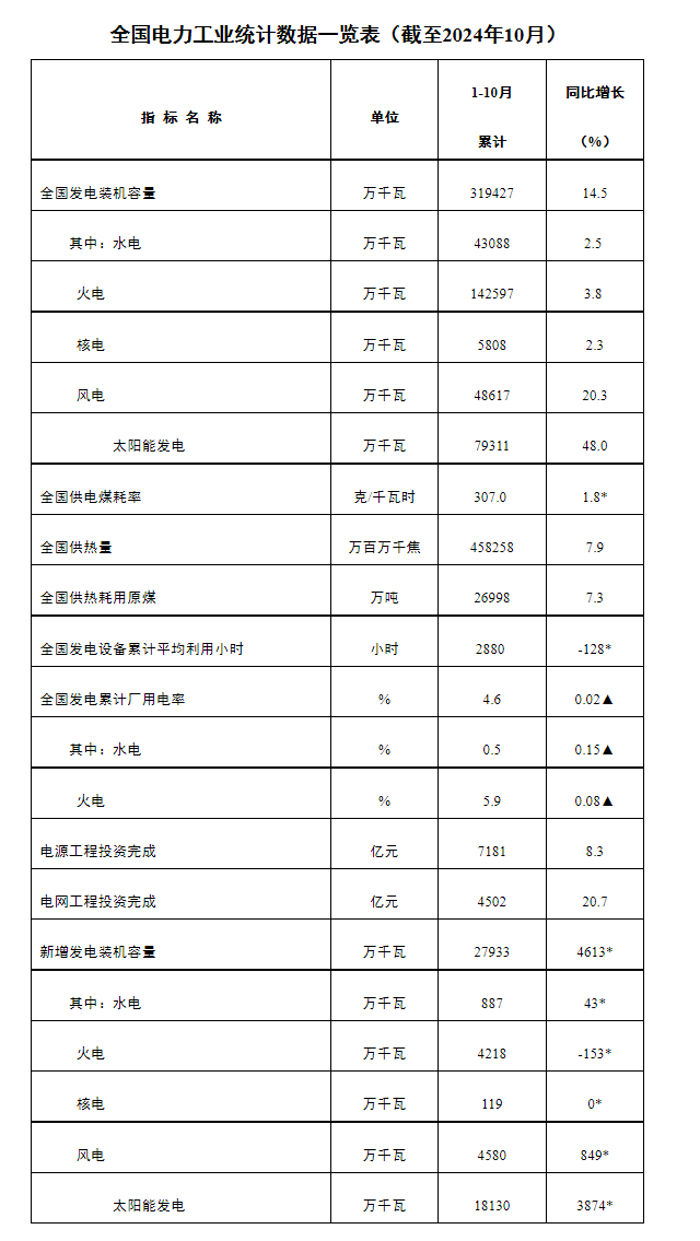 国家江南官网app 发布2024年1—10月份全国电力工业统计数据