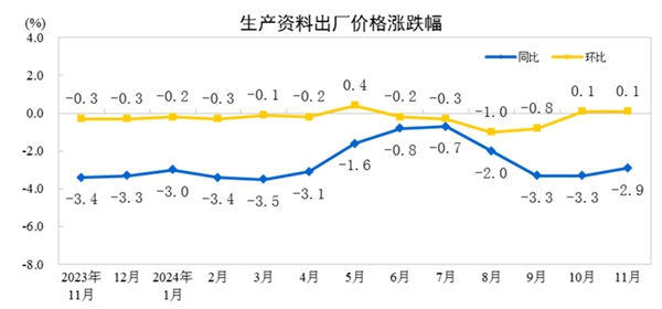 2024年11月份工业生产者出厂价格同比降幅收窄 环比由降转涨