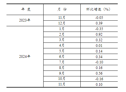 根据季节调整模型自动修正结果,对2023年11月份以来的固定资产投资(不含农户)环比增速进行修订。修订结果及2024年11月份环比数据如下: