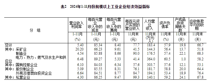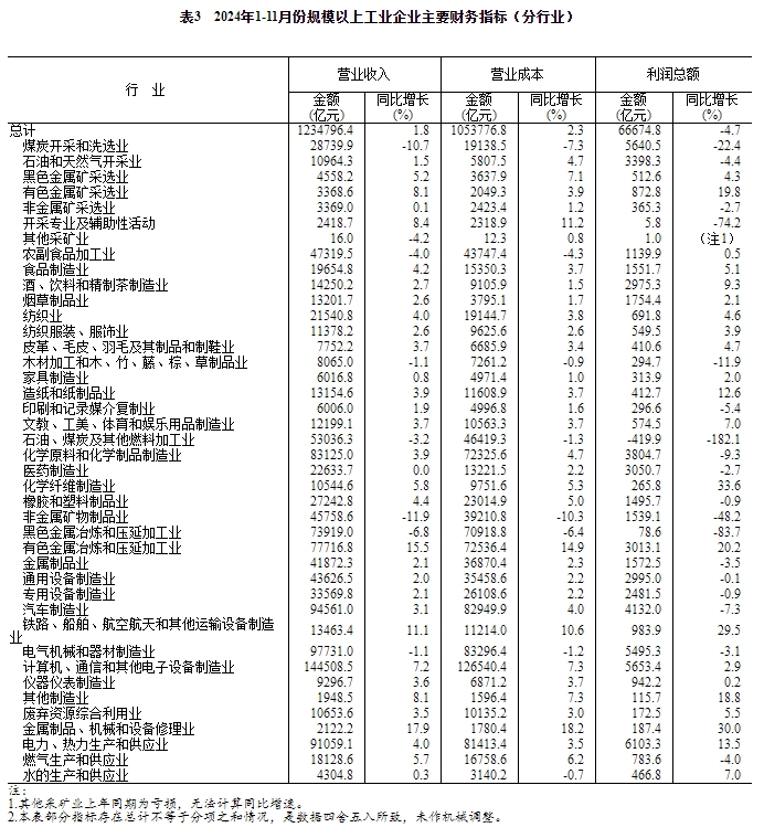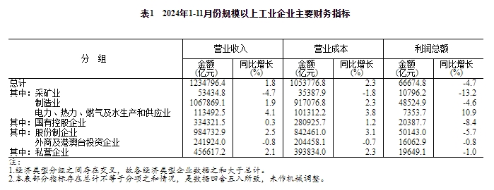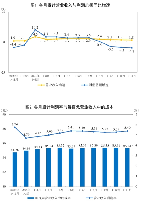 2024年1—11月份全国规模以上工业企业利润下降4.7%