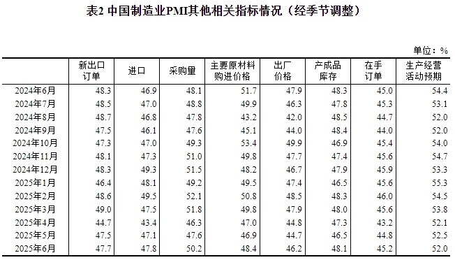 2025年6月中国采购经理指数运行情况