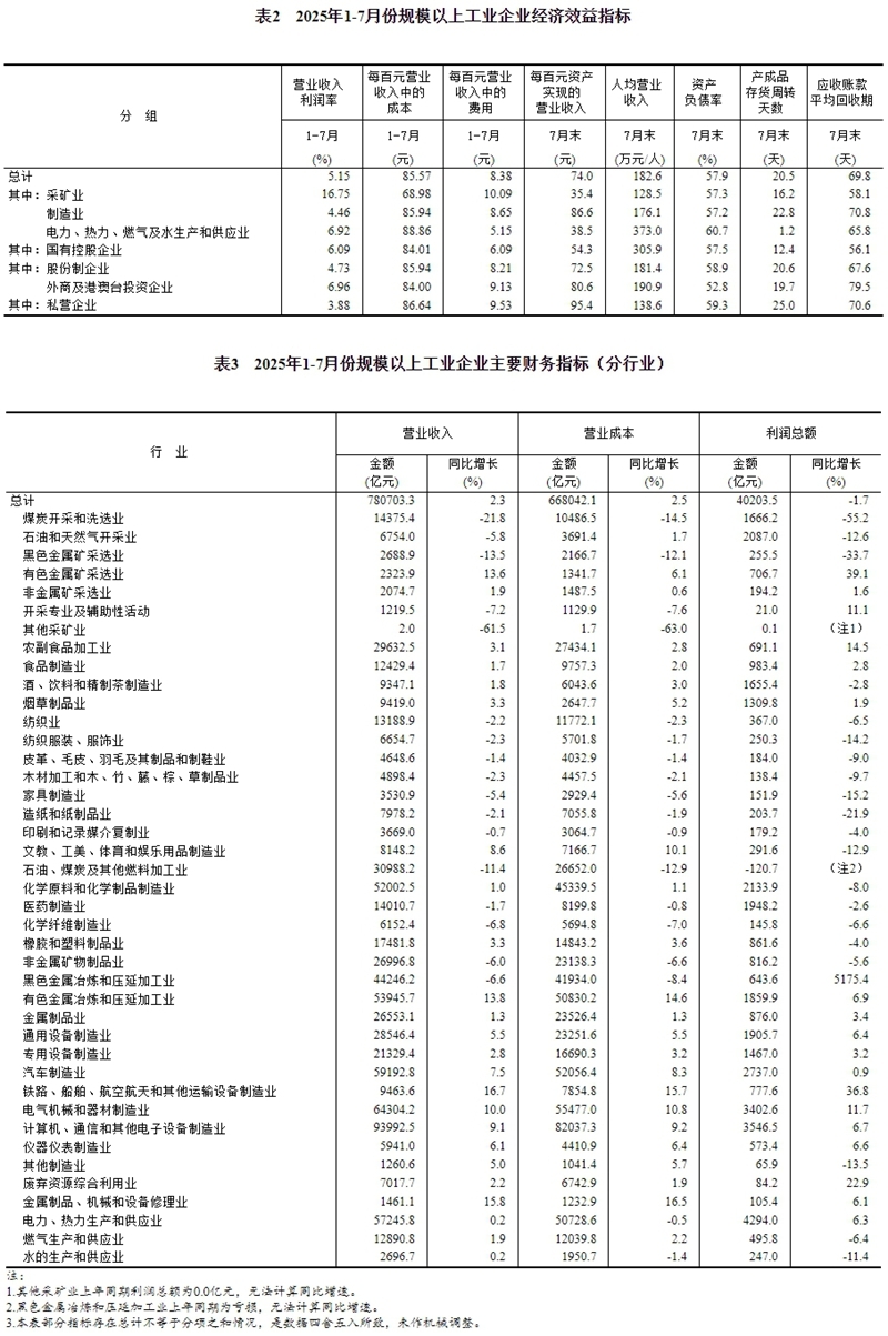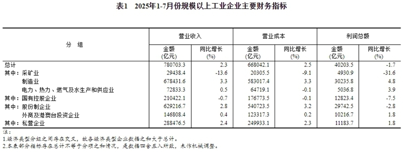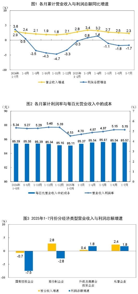 2025年1—7月份全国规模以上工业企业利润下降1.7%