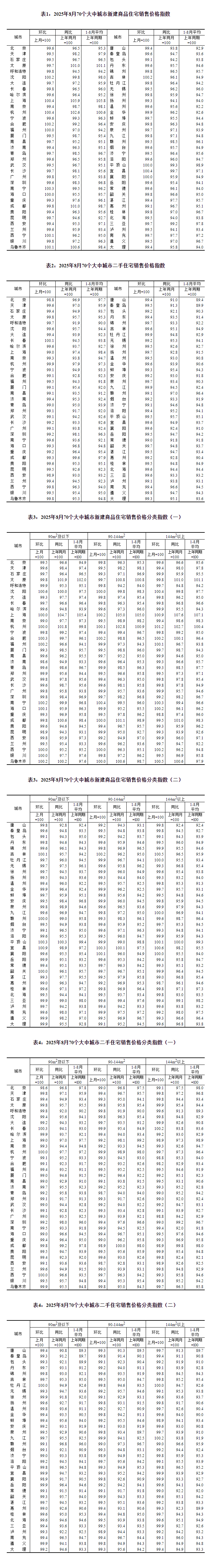 2025年8月份70个大中城市商品住宅销售价格变动情况