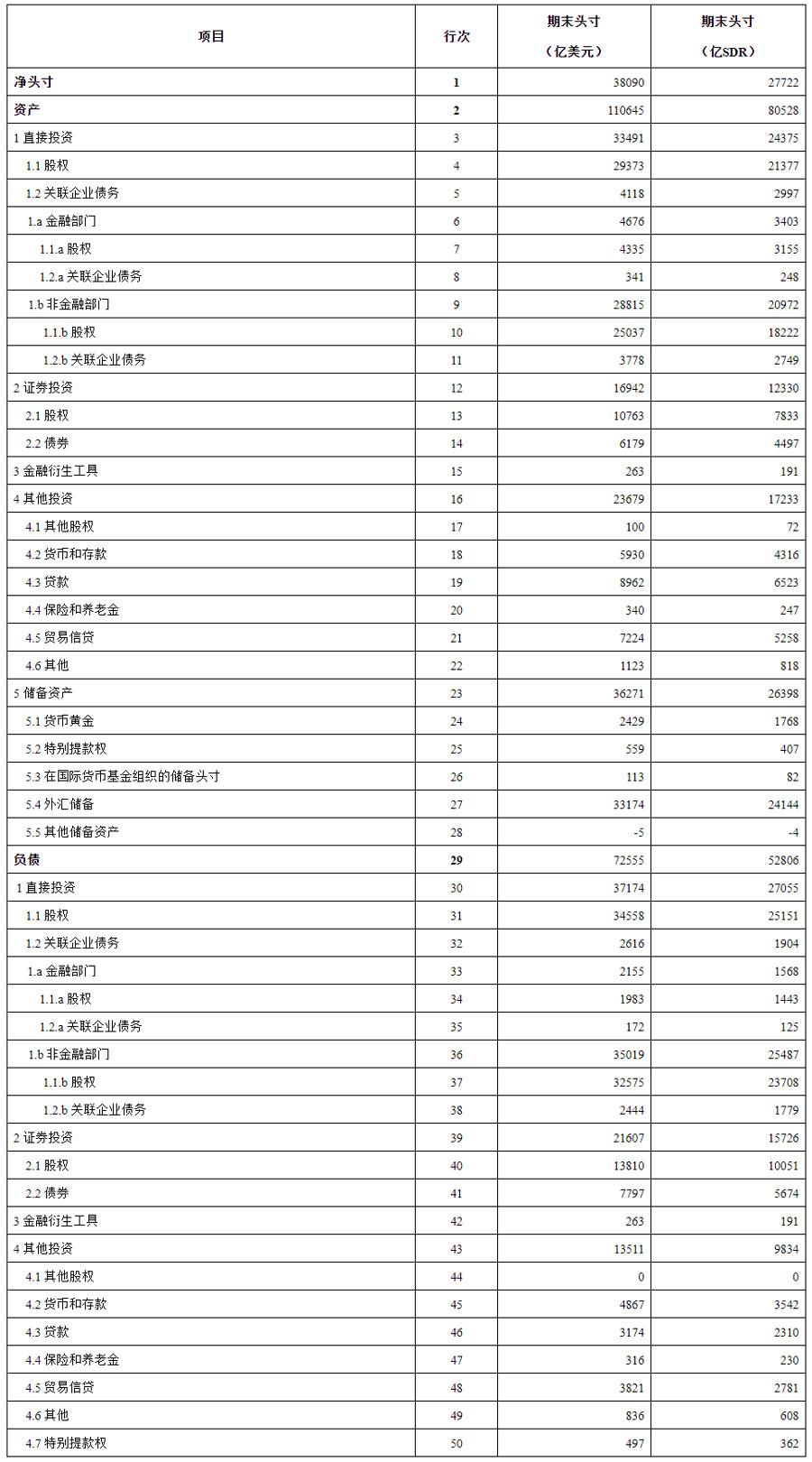 3.SDR计值的数据,是由当季以美元计值的数据通过SDR兑美元季末汇率折算得到。