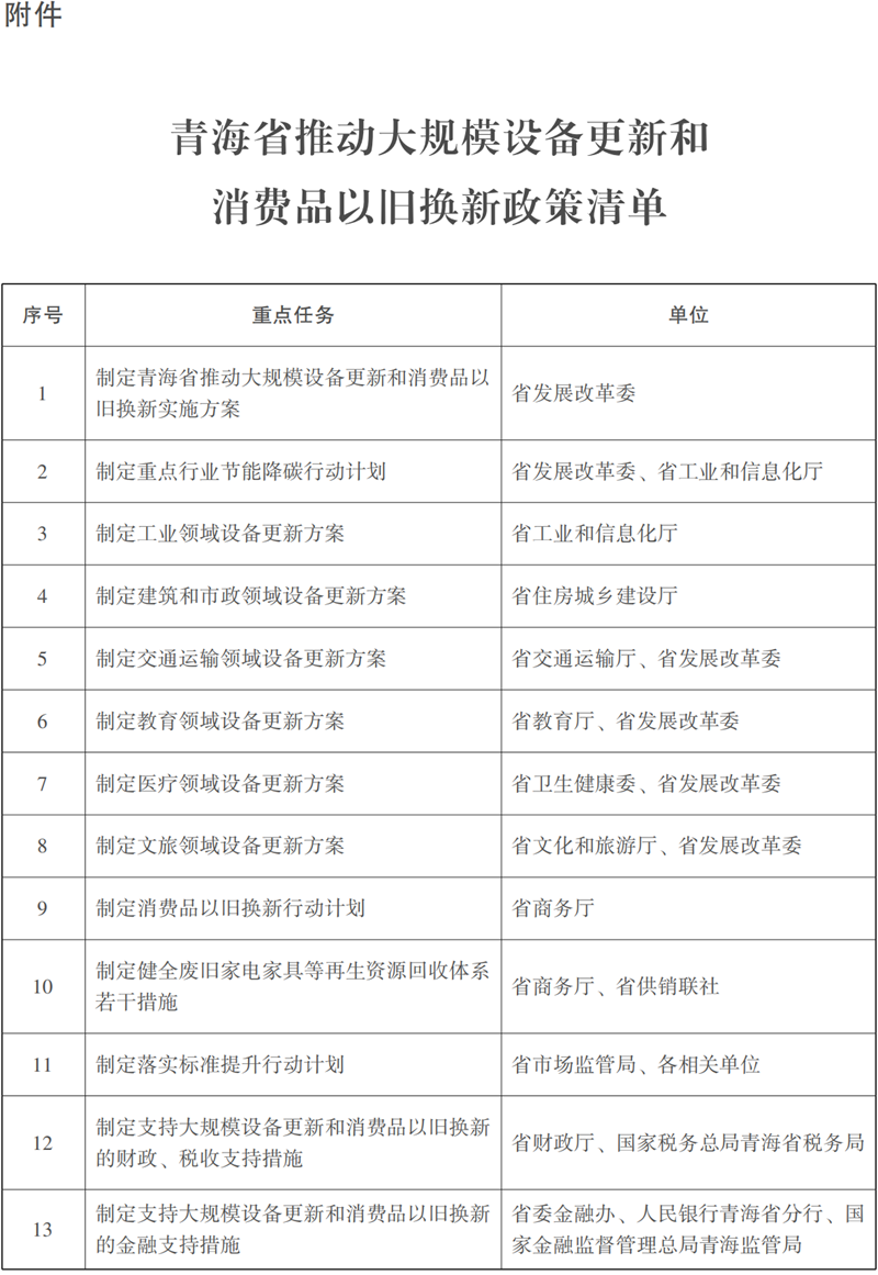 附件:青海省推动大规模设备更新和消费品以旧换新政策清单