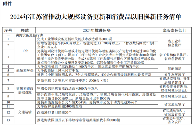 附件:2024年江苏省推动大规模设备更新和消费品以旧换新任务清单