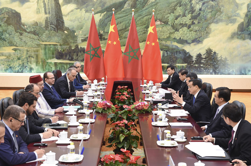 李克强指出,中摩合作互补性强,前景广阔。中国在基础设施建设等方面积累了丰富经验,在建材、装备制造等领域拥有许多性价比好的优势产能。中方愿同摩方对接发展战略,支持中国企业参与摩基础设施建设和工业化进程,开展工业园区、高铁、可再生能源等领域的产能合作,转让适用技术,培训技术和管理人员,提升摩洛哥自主发展能力。希望双方在开展全方位合作的基础上,面向整个非洲市场,抓住几个具有示范性意义的合作大项目做大做强,相信能够结出丰硕果实,促进共同发展繁荣。