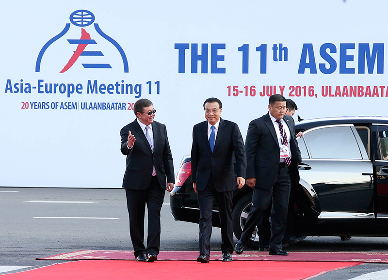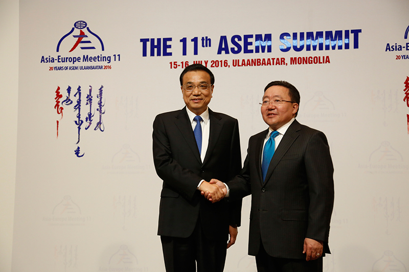 第十一届亚欧首脑会议开幕:蒙古国总统迎候李克强