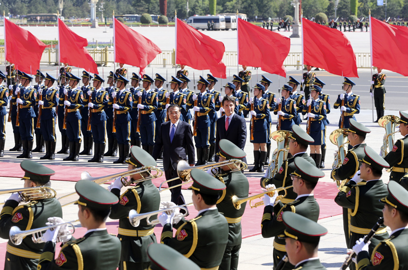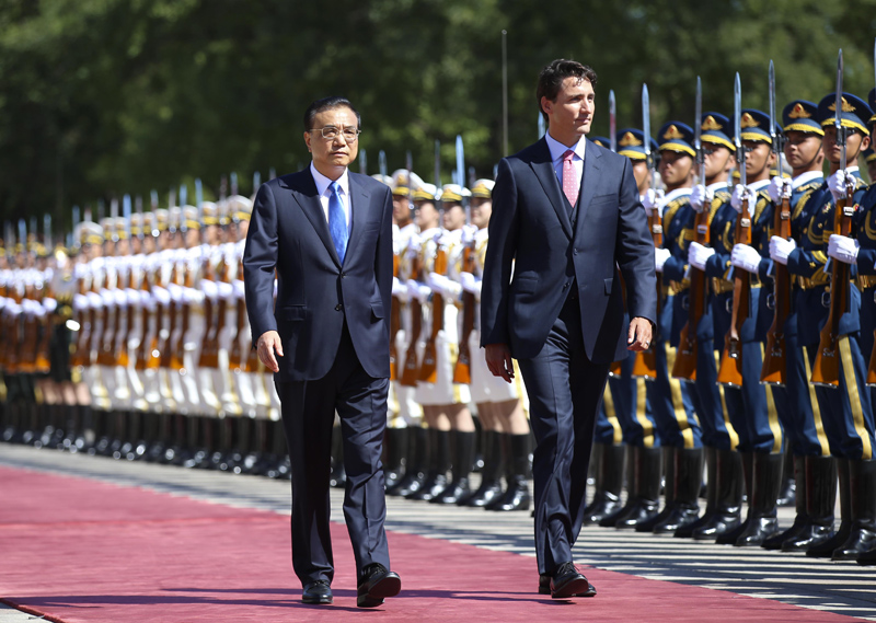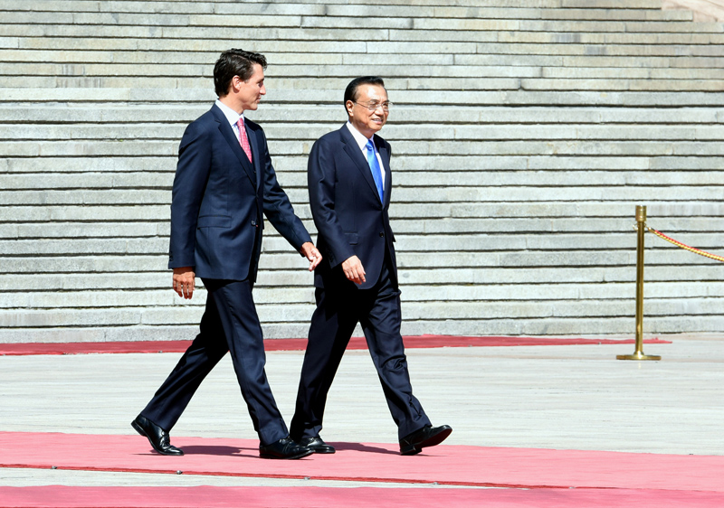 李克强举行仪式欢迎加拿大总理特鲁多访华