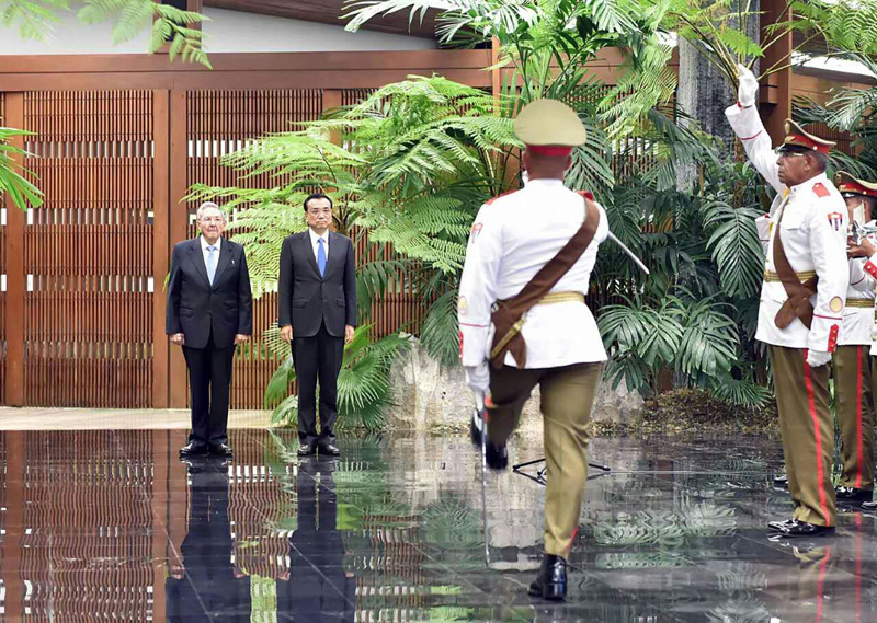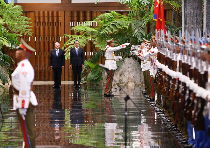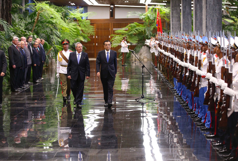 劳尔·卡斯特罗主持仪式欢迎李克强到访
