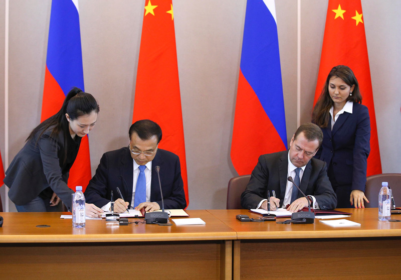 当地时间7日下午,中俄总理第二十一次定期会晤后,李克强总理与俄罗斯总理梅德韦杰夫共同签署本次会晤联合公报,发表《中俄政府首脑关于深化和平利用核能领域战略合作的联合声明》,见证两国政府和企业间经贸、投资、金融、民用核能、高科技、国界联检、教育、文化等领域20余项合作文件的签署。
